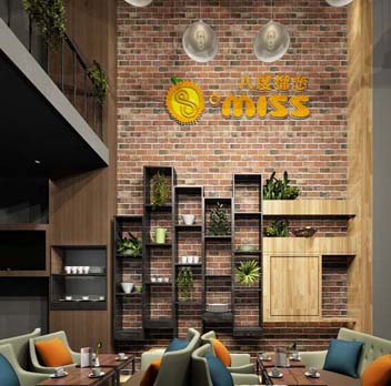 南寧甜品店設計一樓前廳,裸露的紅磚墻,木制的裝飾柜,綠色的植物,復古式吊燈,一切都是這么隨心所欲,來到這里就是放松心情!
