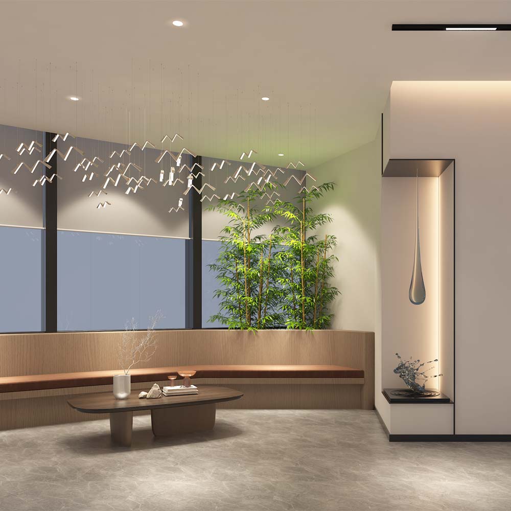 從空間布局上來(lái)看,170平的辦公會(huì)所設(shè)計(jì)裝修可利用面積確實(shí)不算大,又要滿(mǎn)足以接待客戶(hù)為主的辦公、娛樂(lè)需求,曾工巧妙利用環(huán)窗位置條件,結(jié)合“去前臺(tái)化”設(shè)計(jì)與全景落地玻璃窗,打造簡(jiǎn)約接待等候區(qū);獨(dú)立辦公室與小型茶桌相結(jié)合,是正常辦公區(qū)域;休閑區(qū)域則是由茶桌與麻將桌等相結(jié)合,預(yù)留足夠空間安置娛樂(lè)裝置;