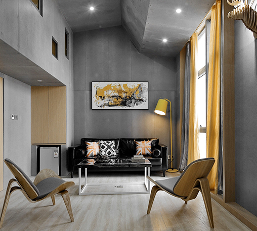 本案是一個(gè)由兩套40平方的小戶型打造而成,作為南寧小型展廳空間裝修,設(shè)計(jì)師利用了層高4.3米的優(yōu)勢(shì),通過增加部分閣層,將本不大的面積進(jìn)行放大。鑒于原始建筑結(jié)構(gòu)中的梁位粗大而低沉,設(shè)計(jì)師并未做過多的處理,而是利用幾何構(gòu)造,將梁位融入到整個(gè)空間,讓原有的空間更具層次感和立體感。作為南寧小型展廳空間裝修、南寧LOFT展廳設(shè)計(jì)的樣版,設(shè)計(jì)師在設(shè)計(jì)上,簡(jiǎn)化了繁雜的修飾,采用水泥板、木飾面板、槽鋼等簡(jiǎn)單的材料,將硬朗的工業(yè)風(fēng)和簡(jiǎn)約的現(xiàn)代風(fēng)的結(jié)合~
