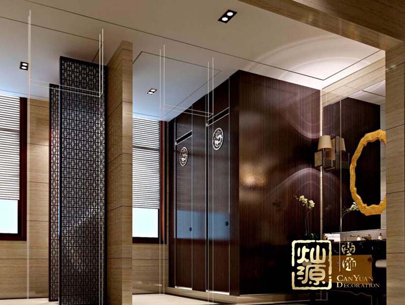 南寧浴足城設(shè)計前廳過道:深色實木為主,局部點綴鮮艷濃麗的色調(diào),不著痕跡地顯露出幾分氣息,營造一種沉穩(wěn)大氣,富麗堂皇的異國情調(diào)。